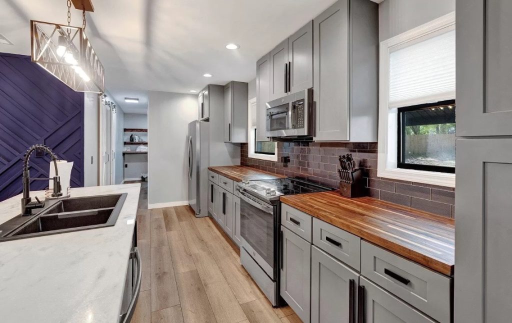 Red Rock Construction modernized the kitchen and bathroom with timeless finishes, fresh interior paint, and energy-efficient lighting while maintaining cost-effective materials. Existing features like the brick exterior and pool were enhanced rather than replaced, minimizing expenses and boosting resale appeal.